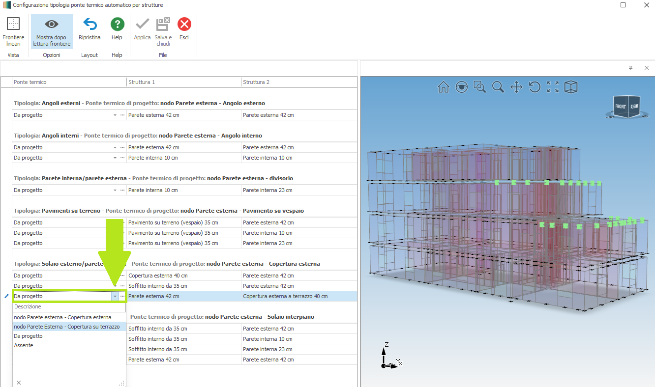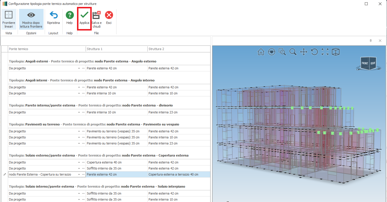 Modifica dei ponti termici estratti in automatico