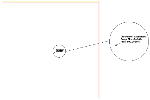 L'immagine qui sopra mostra i campi cui fa riferimento il comando. I valori mostrati nell'immagine sono pari alla radice quadrata dell'area specifica effettiva, ossia dell'area di copertura dello sprinkler. In questo modo il programma dispone gli sprinkler in modo da avere le aree specifiche confinanti tra loro. Vediamo come utilizzare il comando attraverso un esempio. Supponiamo di dover disporre gli sprinklers nell'ambiente riportato nell'immagine sottostante. Si è eseguito l'input delle pareti e si è inserito il tag dell'ambiente. Nell'inserire il tag ambiente occorre specificare a quale compartimento appartiene (Ne nsotro esempio il nome del compartimento è Sprinkler)