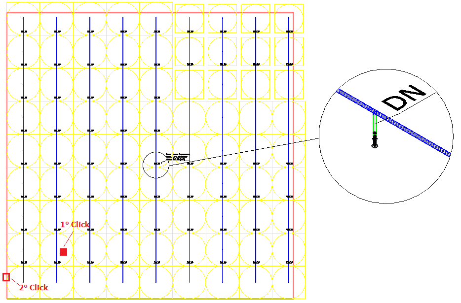 Comando: DSPRINKFinalità: Dispone automaticamente gli sprinkler in un'area da proteggereIl comando permette all'utente l'inserimento di una matrice di sprinkler all'interno di un'area da proteggere secondo La geometria della maglia secondo cui il programma dispone gli sprinkler in un ambiente (occorre pertanto che si sia effettuato l'input del fabbricato con l'inserimento del relativo simbolo ambiente) è specificata nel Compartimento sotto le voci Distanza Lungo Tubo di Distribuzione e Distanza lungo la diramazione.