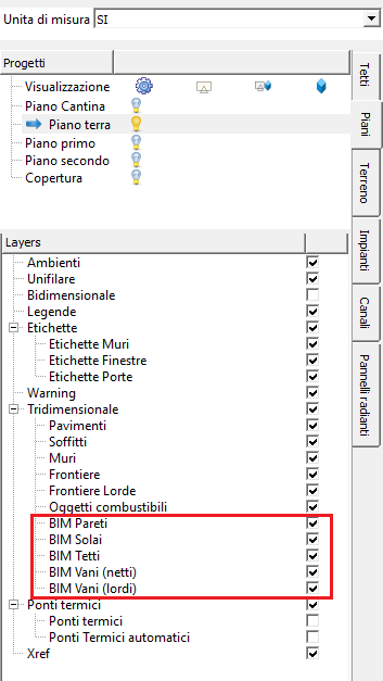 architettonici importati da file IFC nonchè dei vani netti