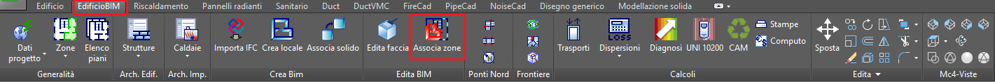 l'associazione tra zone di Mc4Suite e locali del modello architettonico;