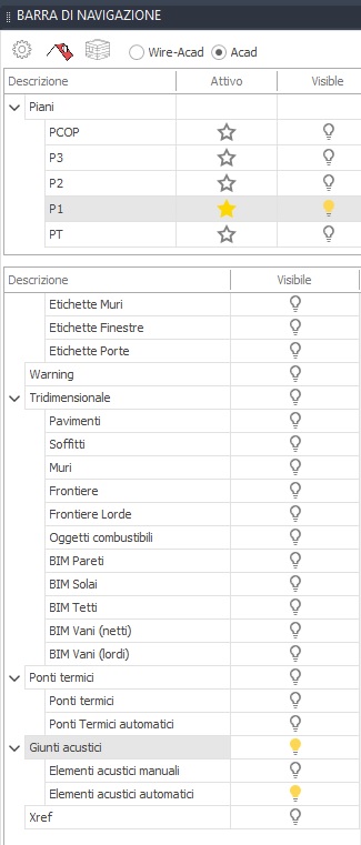 Ricorrendo ai checkbox posti accanto alle voci Elementi acustici manuali ed Elementi acustici automatici si potrà attivare\disattivare la visualizzazione rispettivamente dei giunti acustici inseriti manualmente e dei giunti inseriti in automatico dal programma. Si osserva che i giunti acustici automatici e manuali sono contraddistinti da una diversa simbologia grafica (Figura 40): nello specifico i giunti acustici automatici sono contraddistinti da un simbolo quadrato mentre quelli manuali sono contraddistinti da un simbolo circolare