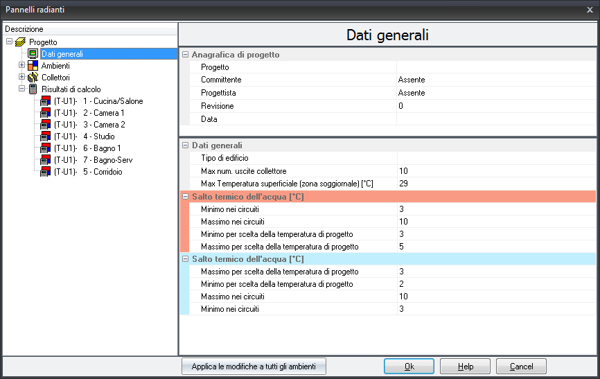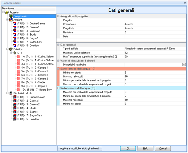 Dati generali, Ambienti, Collettori,