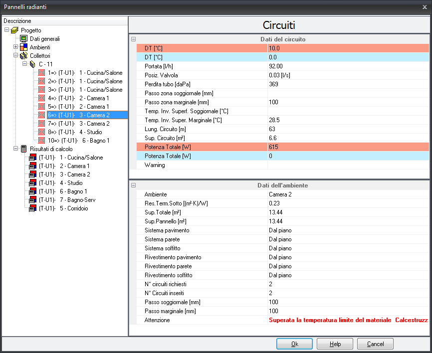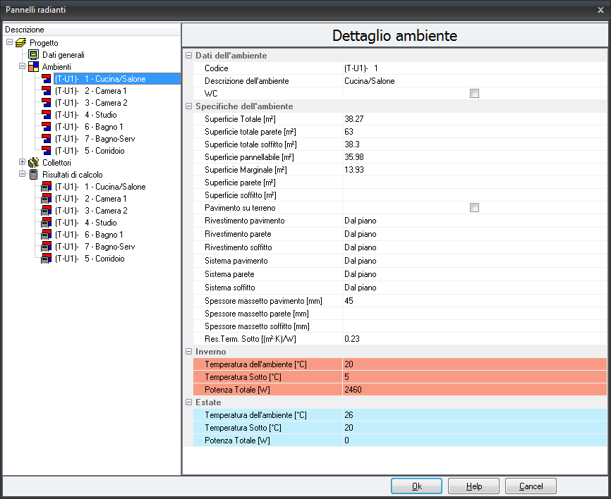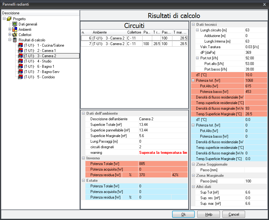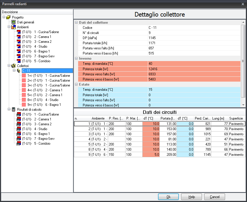 PANNELLI RADIANTI - VISUALIZZAZIONE PROGETTO IN TABELLA