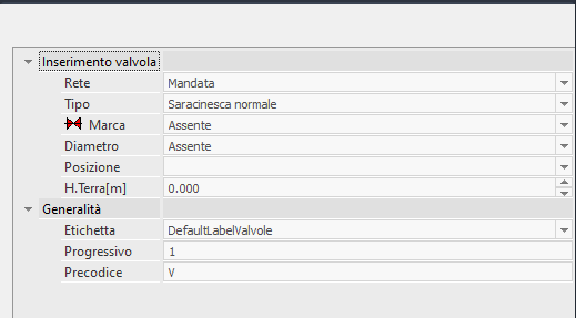 COSA FA: Permette l'inserimento di una valvola del tipo specificato