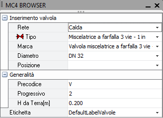 L'immagine sottostante mostra la barra laterale dove è stata selezionata il tipo di valvola che si può utilizzare in questi casi.