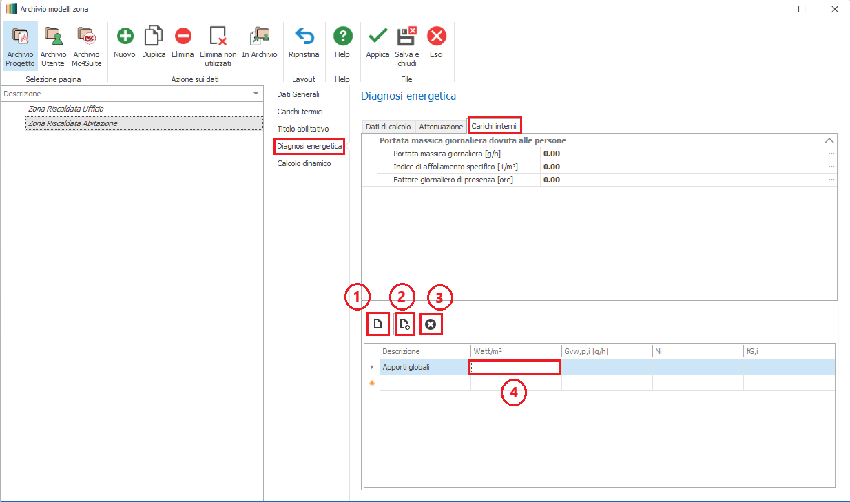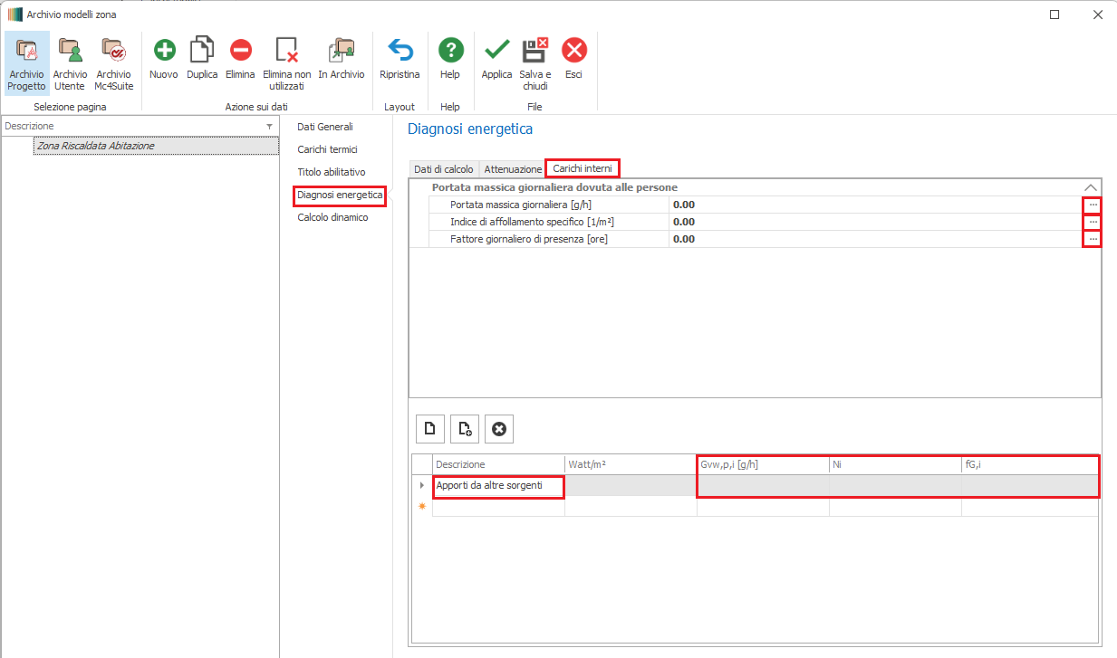 ZONA IMPIANTISTICA - DIAGNOSI ENERGETICA - CARICHI INTERNI