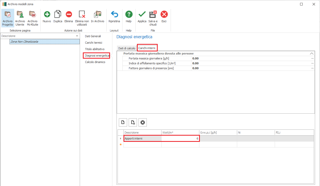 Apporti interni per la zona non climatizzata
