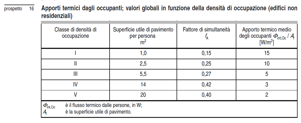 d'uso di tipo non residenziale in base al prospetto 16 (Occupanti