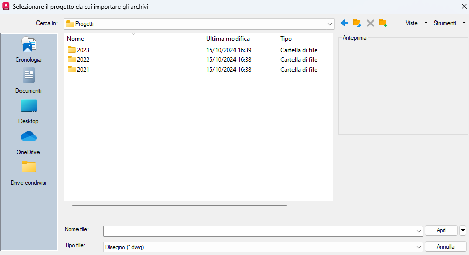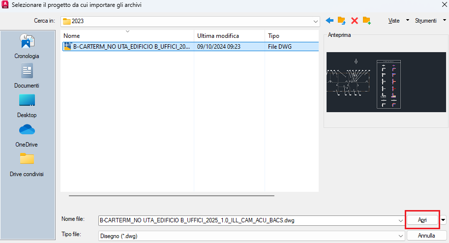 IMPORTAZIONE ARCHIVI DA ALTRO FILE DWG
