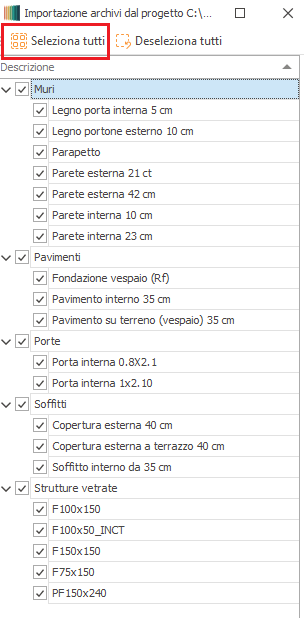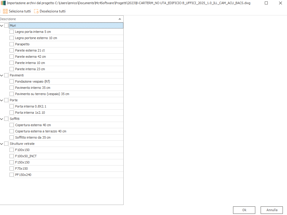 da altro DWG" permette di trasferire nella sezione "Progetto"