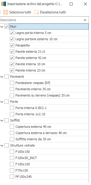 elencati tutti gli elementi di progetto degli archivi Strutture,