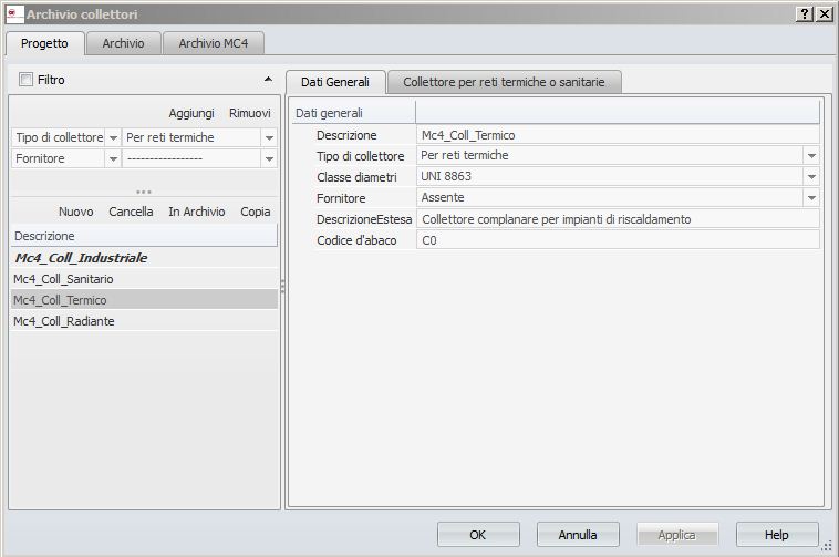 specificati nella scheda Collettore per Reti termiche che si attiva