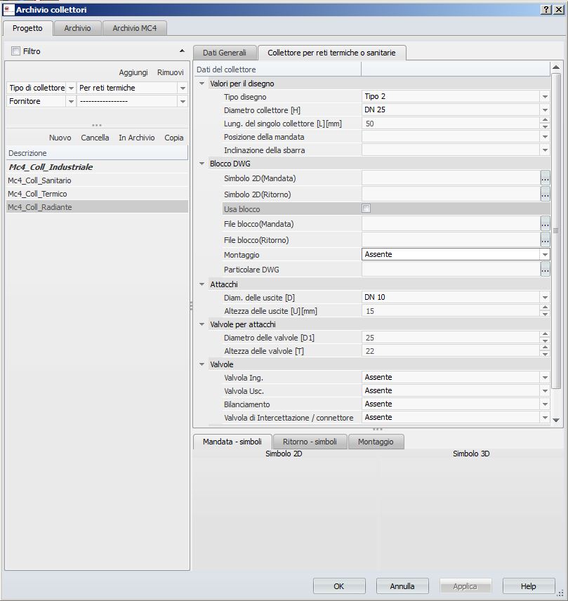 o Diametro Collettore: selezionare il