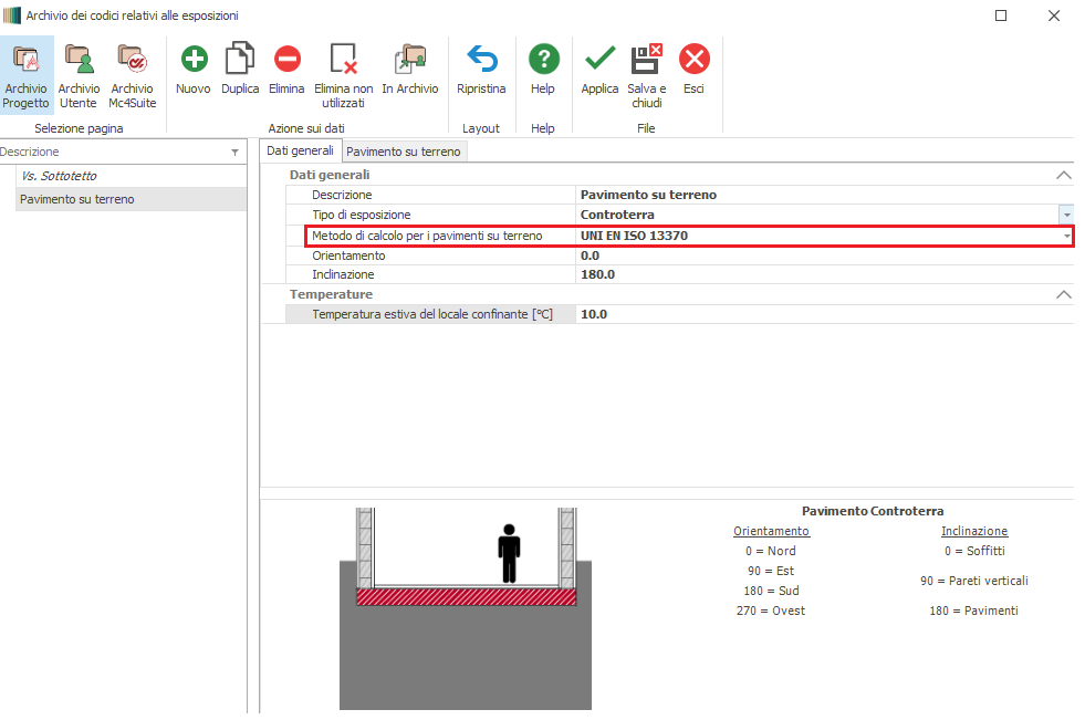 Metodo di calcolo per i pavimenti su terreno : voce associata al tipo di esposizione "Controterra".