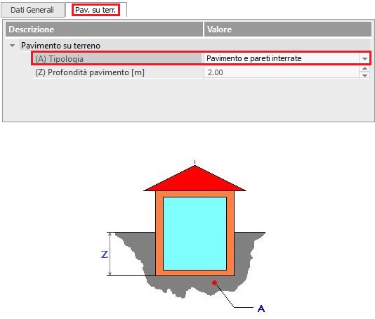 4) Nella scheda Pav. su terra occorre selezionare l'opzione Pavimenti e Pareti Interrate (vedi figura sottostante)