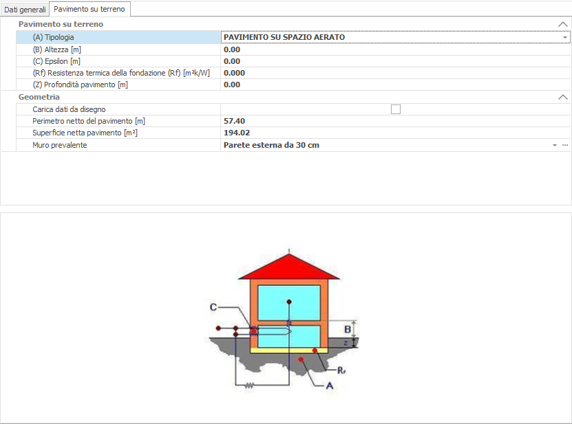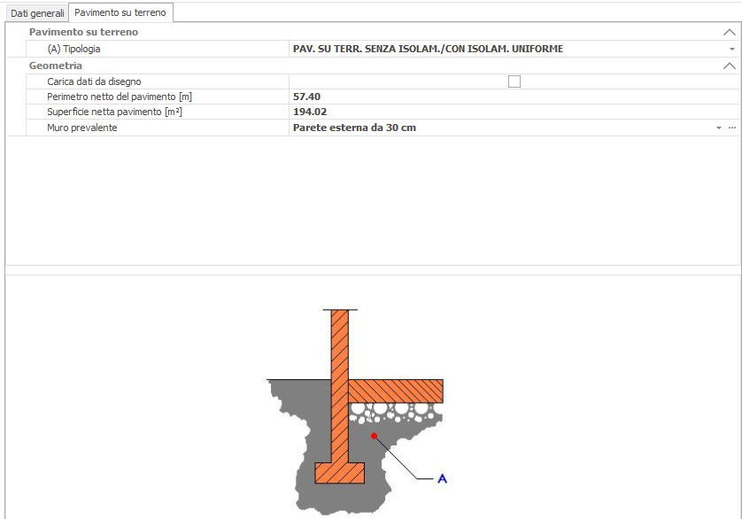 del campo "Metodo di calcolo per i pavimenti su terreno"