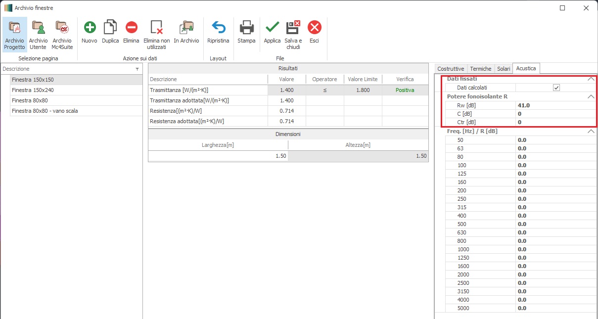 di un’apposita scheda dedicata all’analisi acustica dei serramenti.