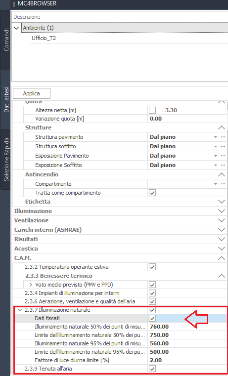 limite, nell'ambito della sezione “Dati per l’illuminotecnica”.