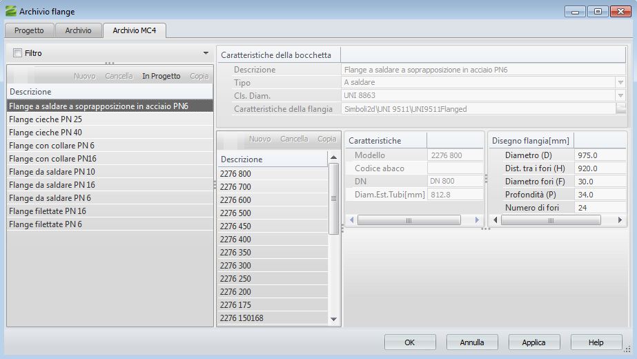 per la creazione/modifica di una flangia nell'archivio omonimo.