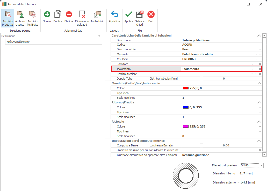 ARCHIVIO DELLE TUBAZIONI - ARCHIVIO ISOLAMENTITale archivio é accessibile in corrispondenza della voce Isolamento nell'Archivio delle tubazioni.