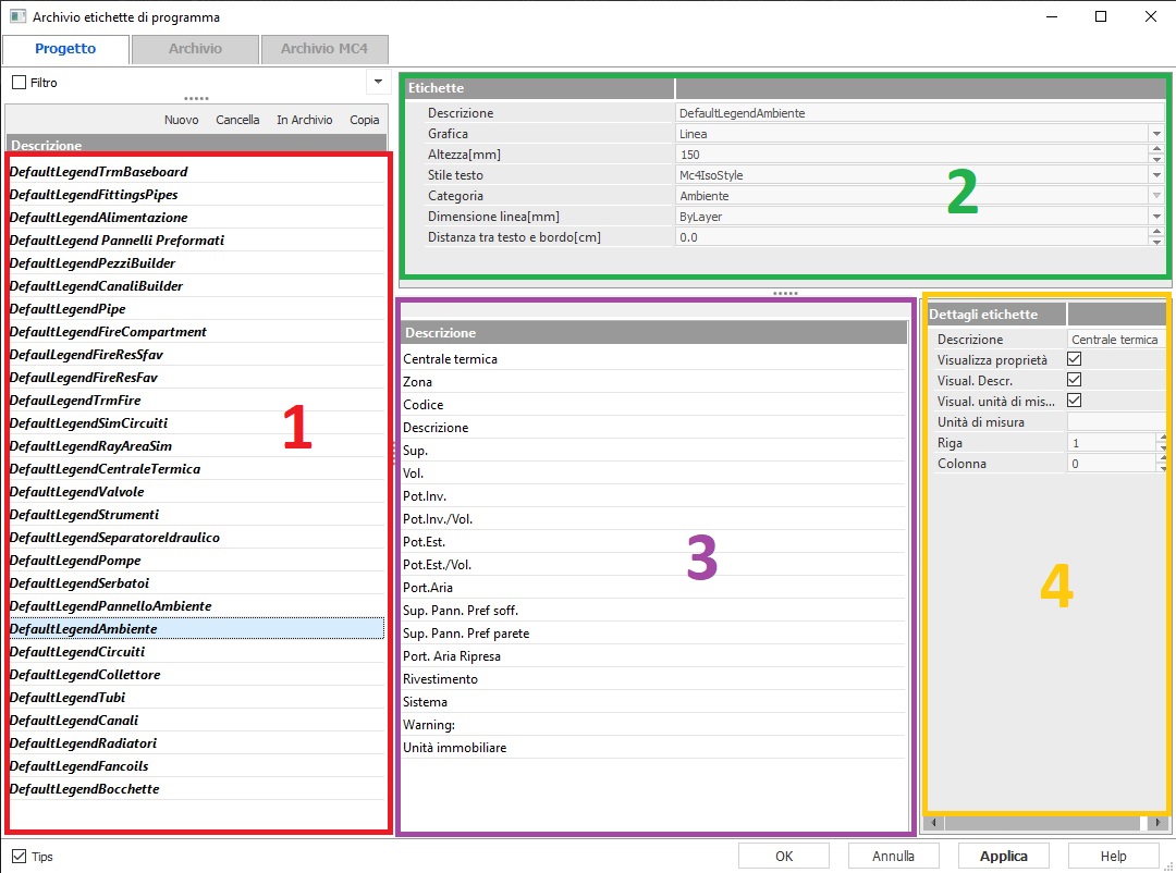 di ogni oggetto disegnato. Tutte le legende sono personalizzabili