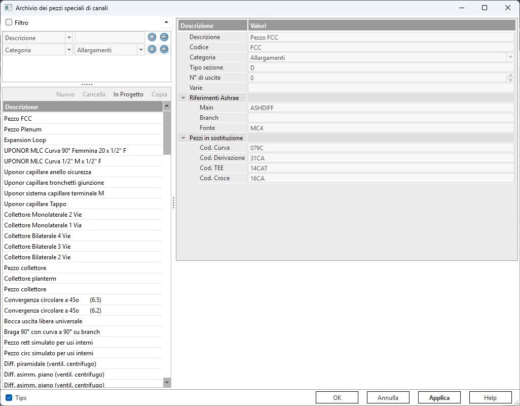 IMPIANTI AERAULICI - ARCHIVIO PEZZI SPECIALI
