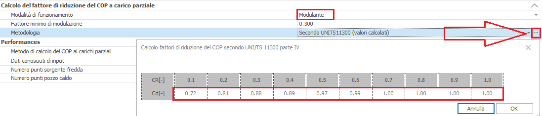 vari fattori di carico di Cc (pompe di calore aria/acqua,
