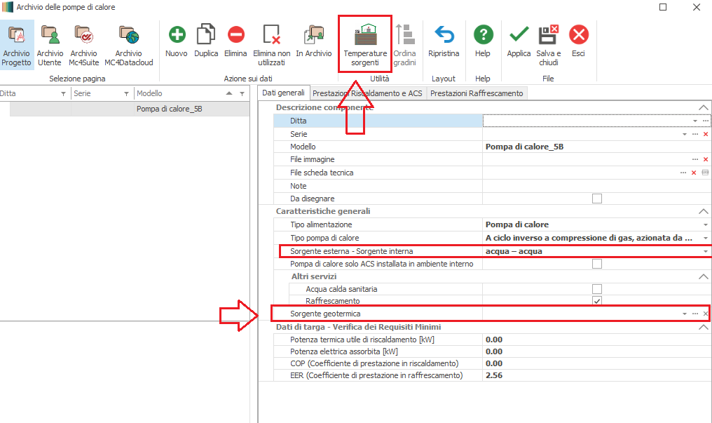 indicati, in base alla tipologia di sorgente fredda e pozzo