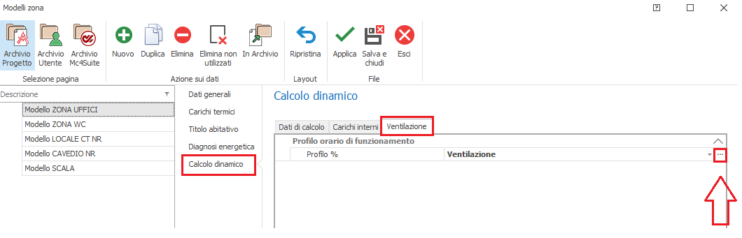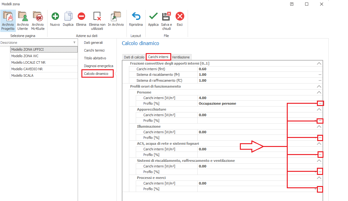 nell'ambito della scheda "Calcolo dinamico" di ciascuna