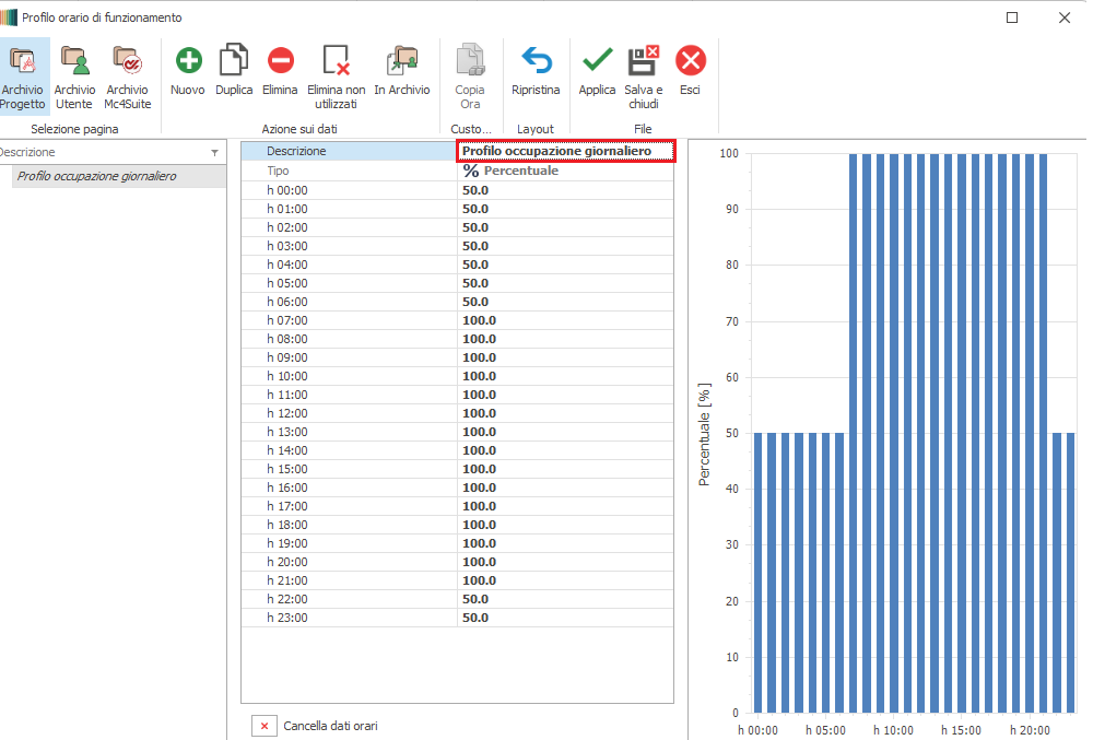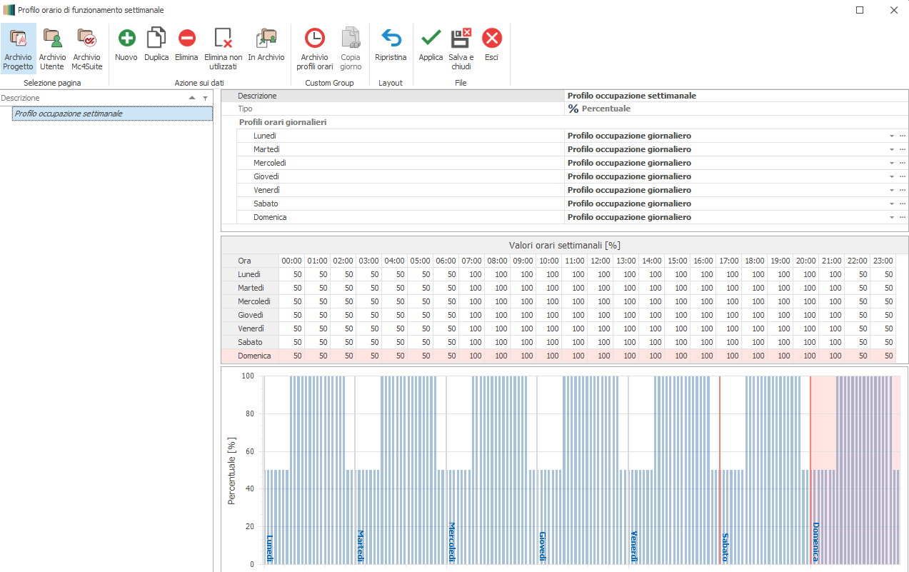 i profili in due tipologie, ovvero in temperatura ed in percentuale.