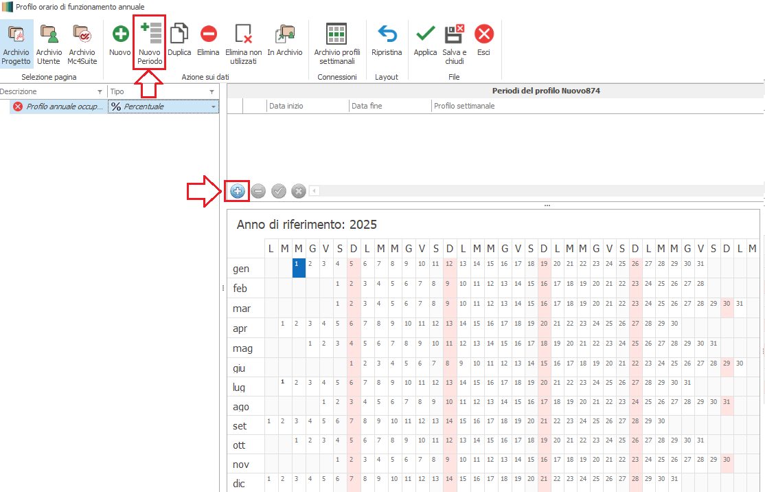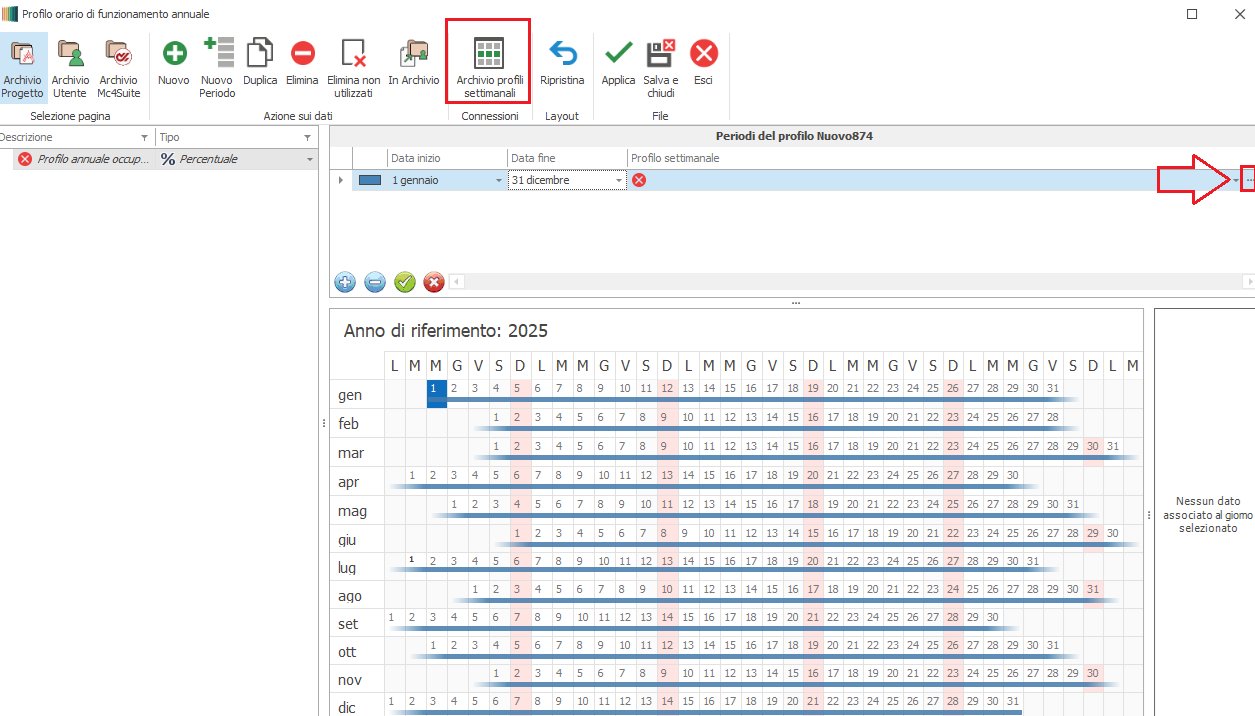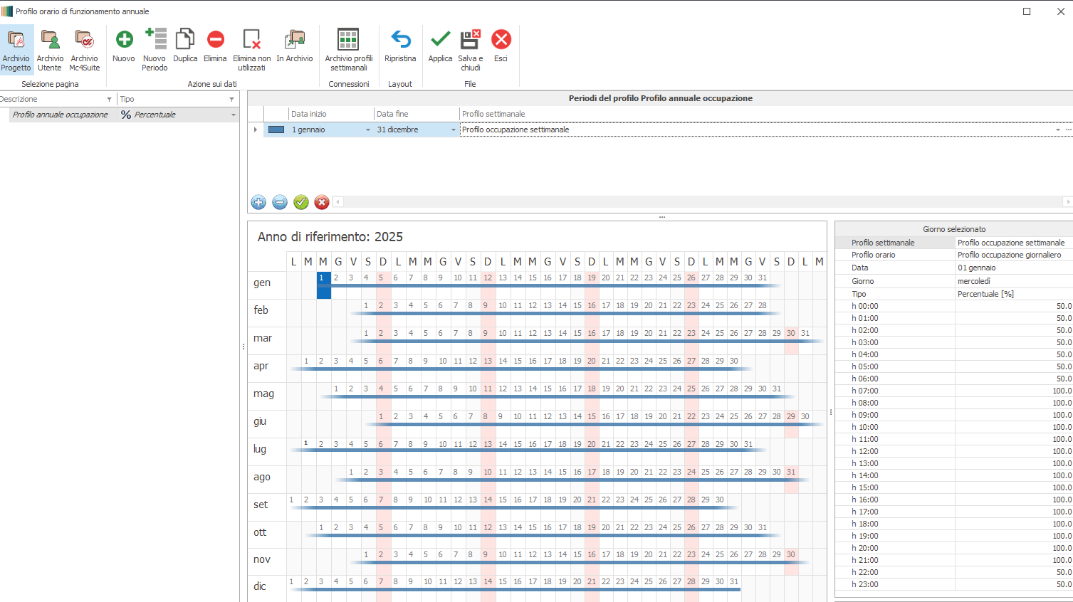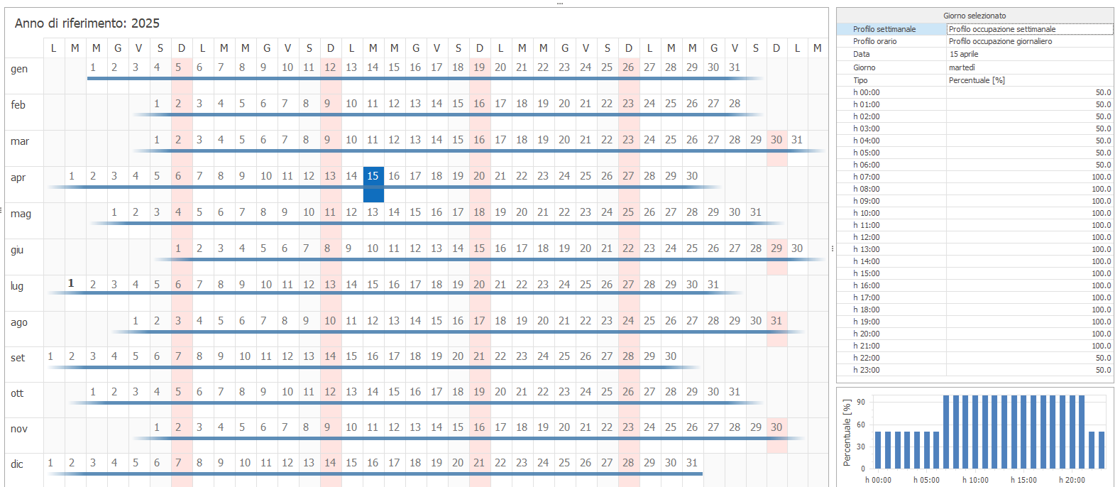 sotto forma di calendario, l'intero profilo annuale, suddiviso
