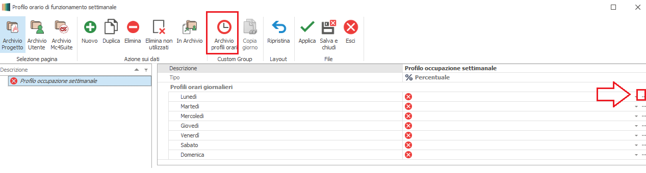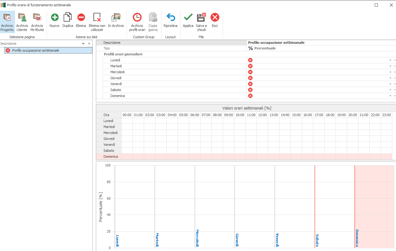 creazione (o modifica) del profilo settimanale, si chiuderà