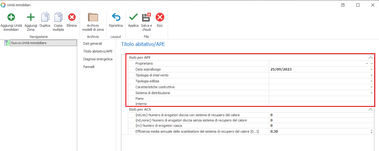 se l'immobile di cui si stà elaborando l'Attestato di Prestazione