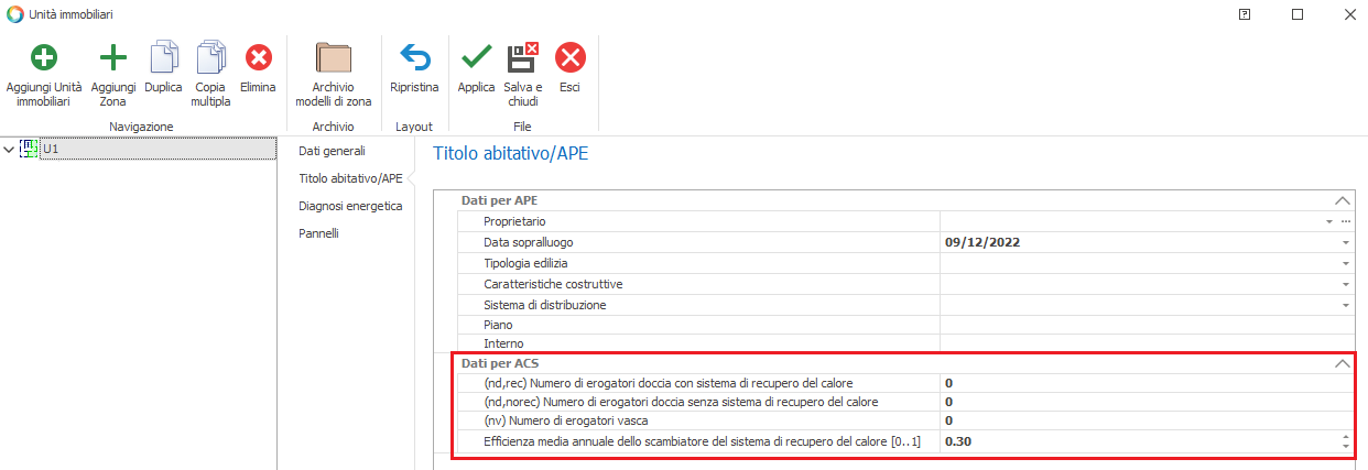 Dati per ACS (CASO DEGLI EDIFICI RESIDENZIALI)