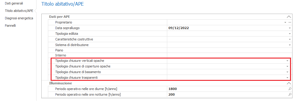 per scopi di Locazione o Passaggio di proprietà); il campo,