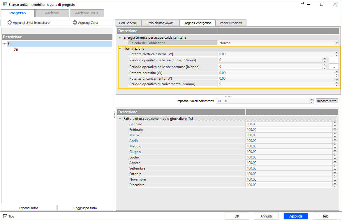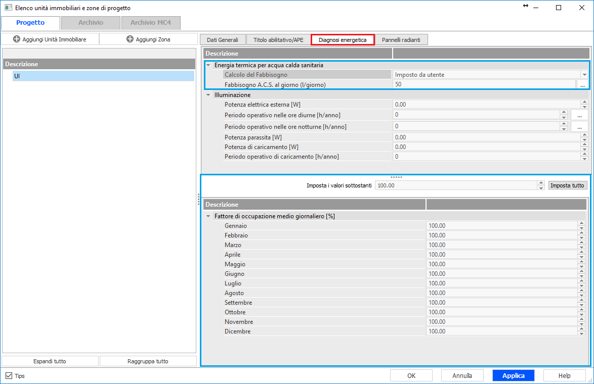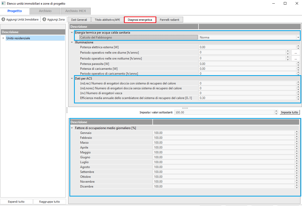 impiegata solo nel caso di Diagnosi energetica (tipo di calcolo