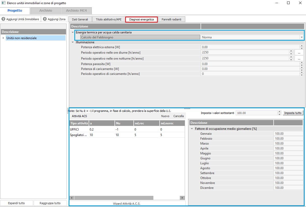 in caso Diagnosi energetica (tipo di calcolo A3) , è possibile