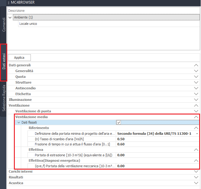medesimi ambienti, in particolare nella scheda Ventilazione.