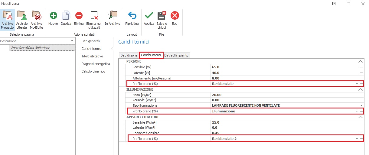 ELENCO UNITA' IMMOBILIARI E ZONE DI PROGETTOZONA IMPIANTISTICA - CARICHI TERMICI - CARICHI INTERNI