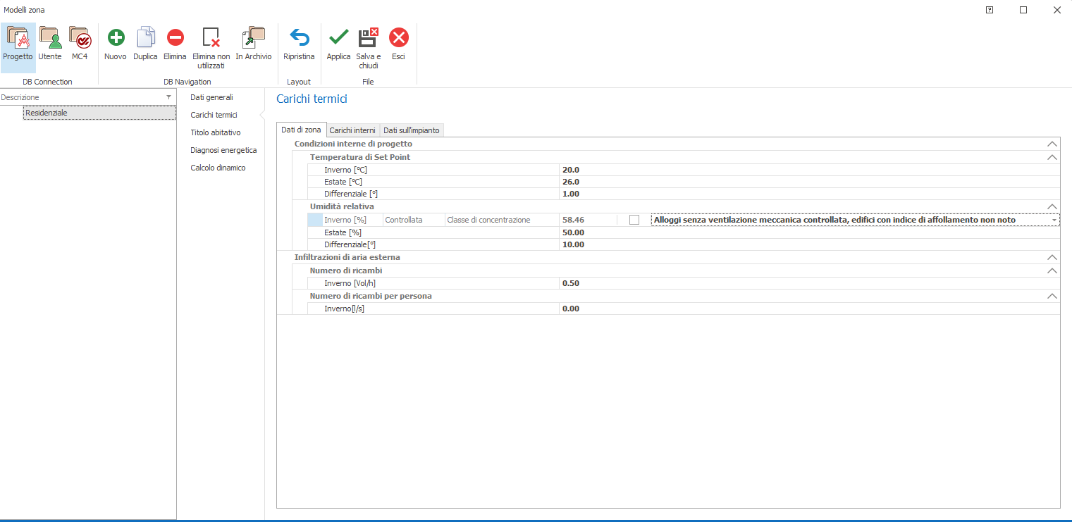 [Vol/h] : Infiltrazioni di aria esterna espressa