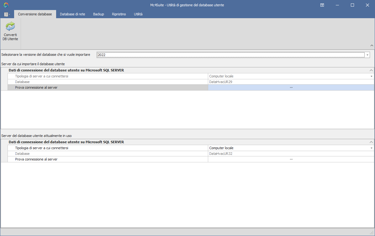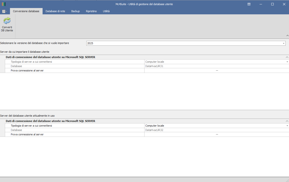 degli archivi utente dalle versioni precedenti Mc4Suite 2025, Mc4Suite 2023 e Mc4Suite 2022.