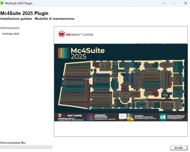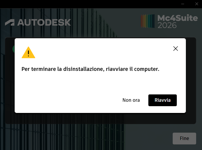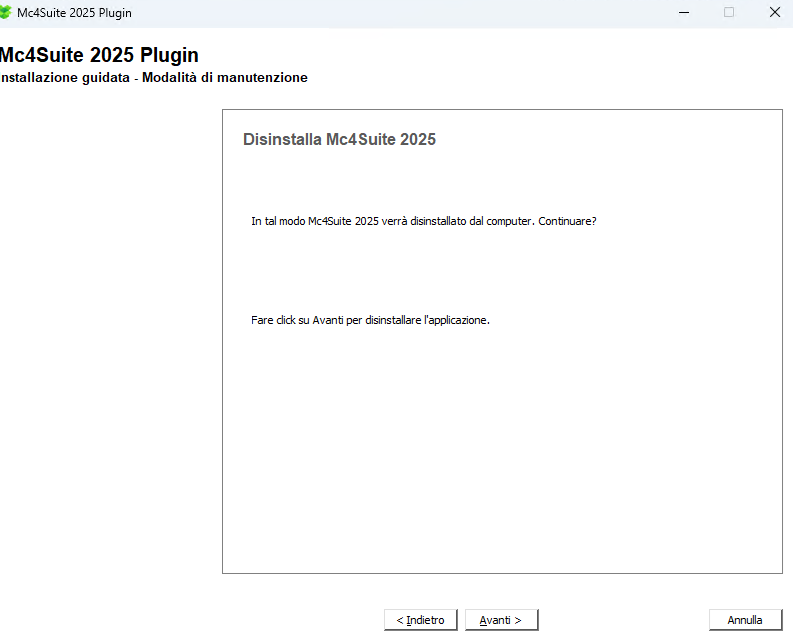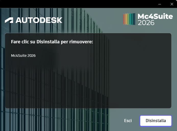 manutenzione del software, occorre cliccare sul pulsante Disinstalla.