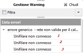 Una volta risolti tutti i problemi di input il pulsante Warnings si disattiverà. Per chiudere la lista occorre cliccare sul pulsante <Chiudi> .