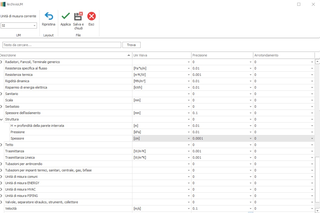 voce "Unità di misura" .