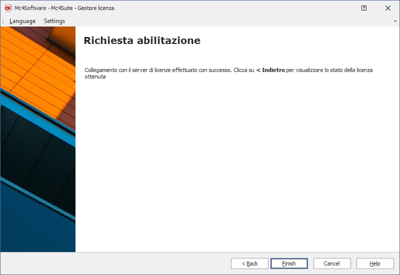 Il messaggio "Collegamento con il server di licenze effettuato con successo" confermerà la regolare terminazione della licenza.