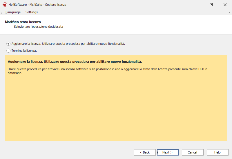 cliccando su BACK si potrà consultare lo stato della licenza.