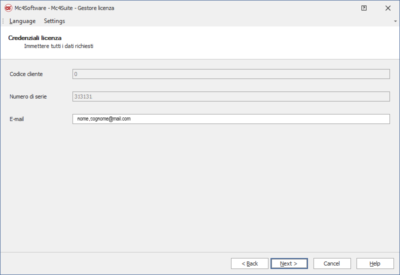 ricevuto dal servizio di supporto tecnico di Mc4Software tramite