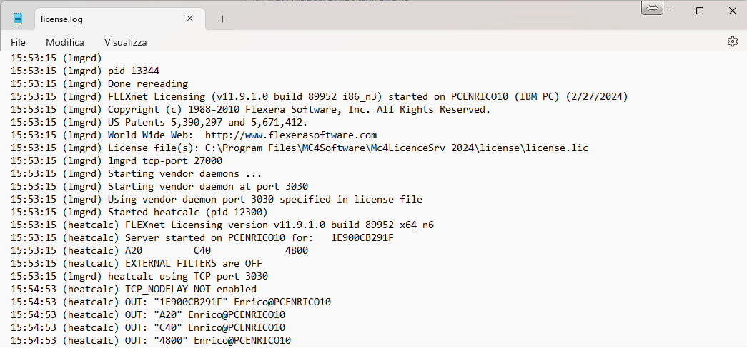 individuare il servizio mc4licenseV24.0 ed avviarlo
