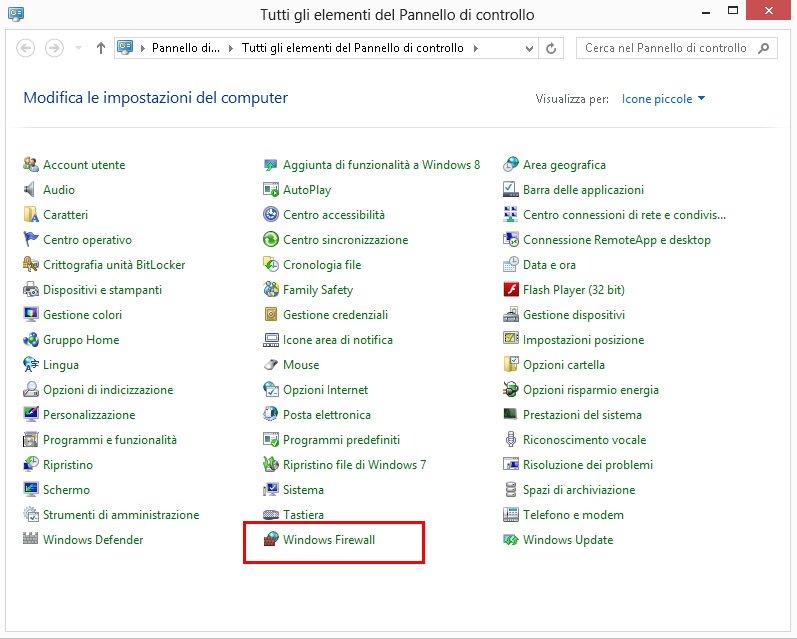 riferite all’utility Windows Firewall o Windows Defender Firewall